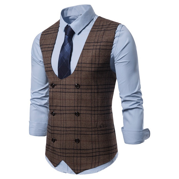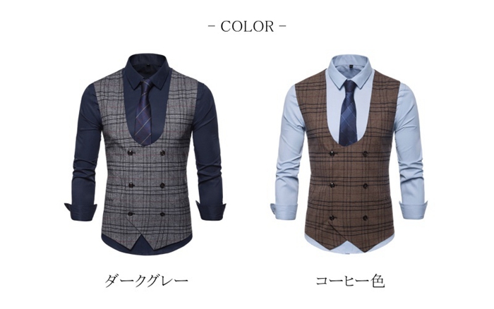 ベスト ジレ メンズ チョッキ ノースリーブ ダブルボタン チェック柄 タータンチェック 細身 タイト フィット スリム