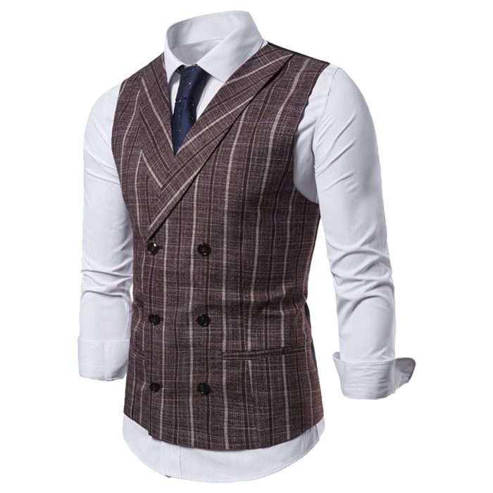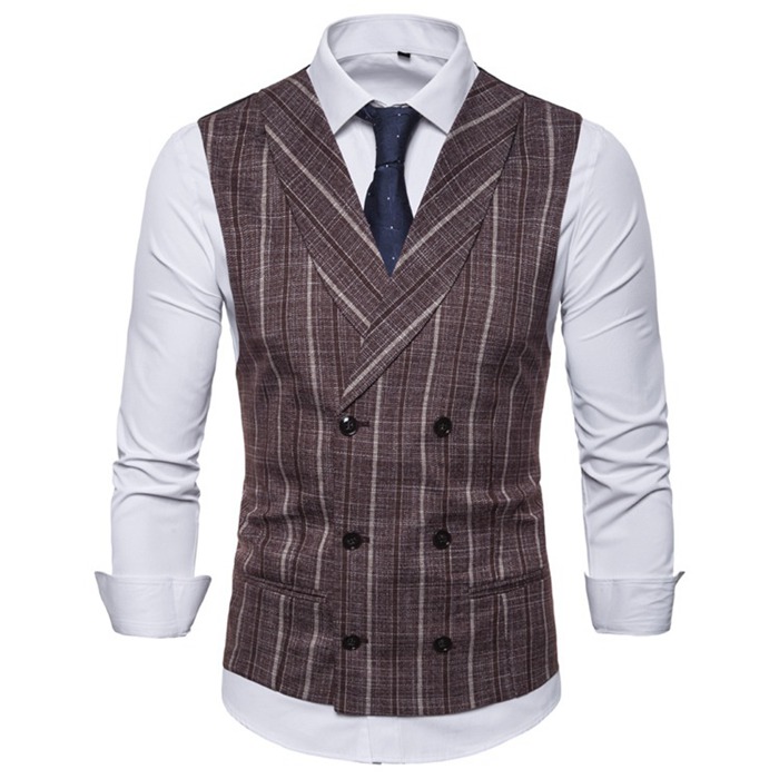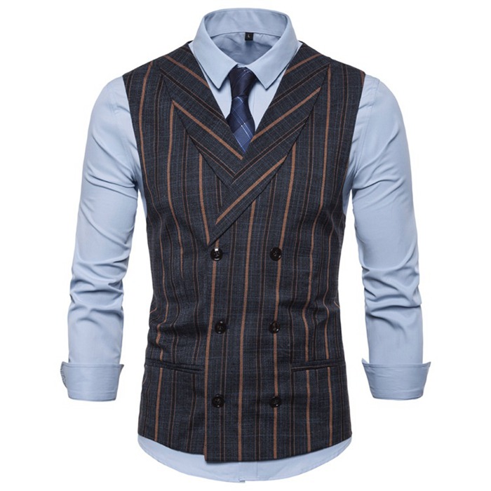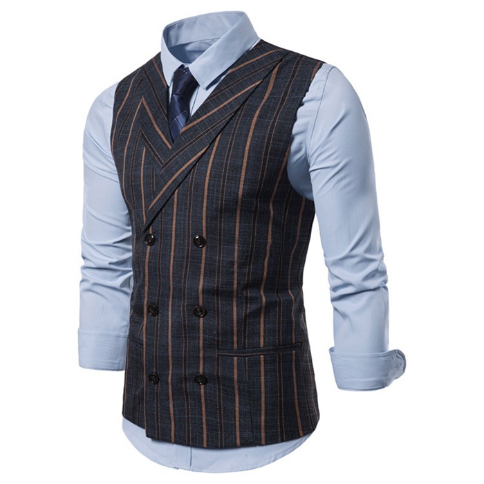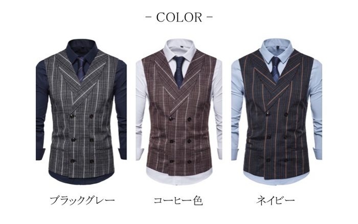 メンズ ベスト ジレ テーラードカラー ノースリーブ チョッキ シャツカラー ダブルボタン ストライプ 柄入り カジュア