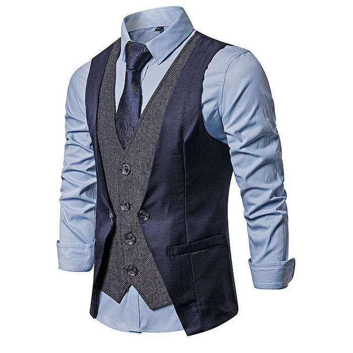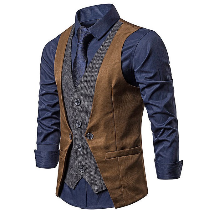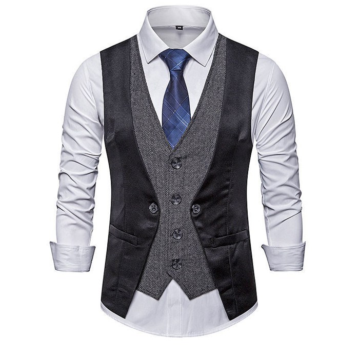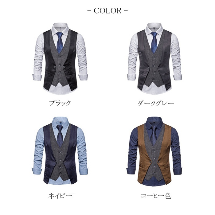 メンズ ジレ ベスト テーラードカラー 春 夏 新作 チョッキ ノースリーブ シングルボタン 前開き レイヤード風 セパレ