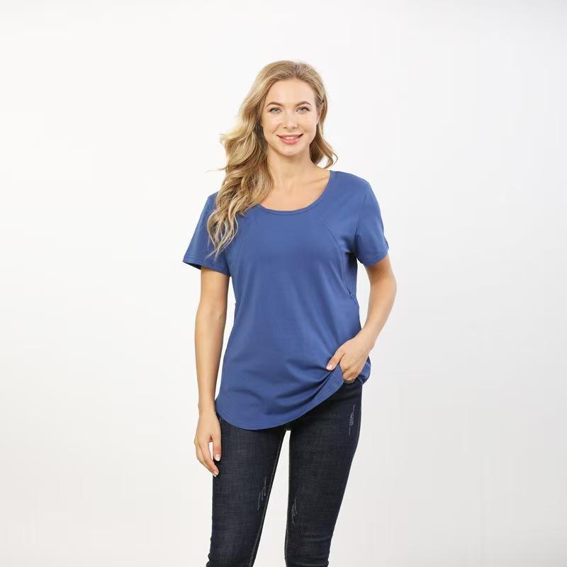 Tシャツ 授乳 マタニティ 授乳服 半袖 カットソー 授乳口付き マタニティウェア 産前から産後 トップス 隠しファスナー付き tシャツ