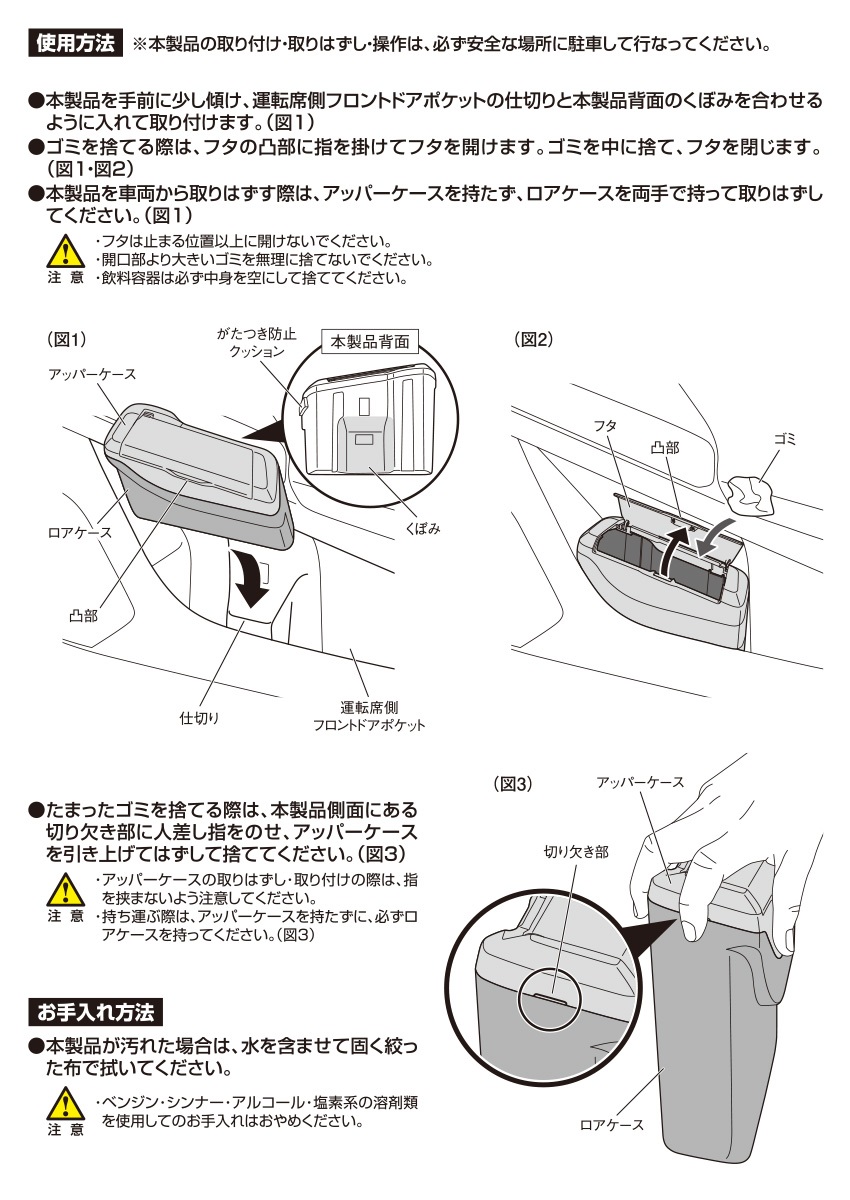 ※運転席側フロントドアポケットに追加オプションが装着されている車両には取り付けできません。