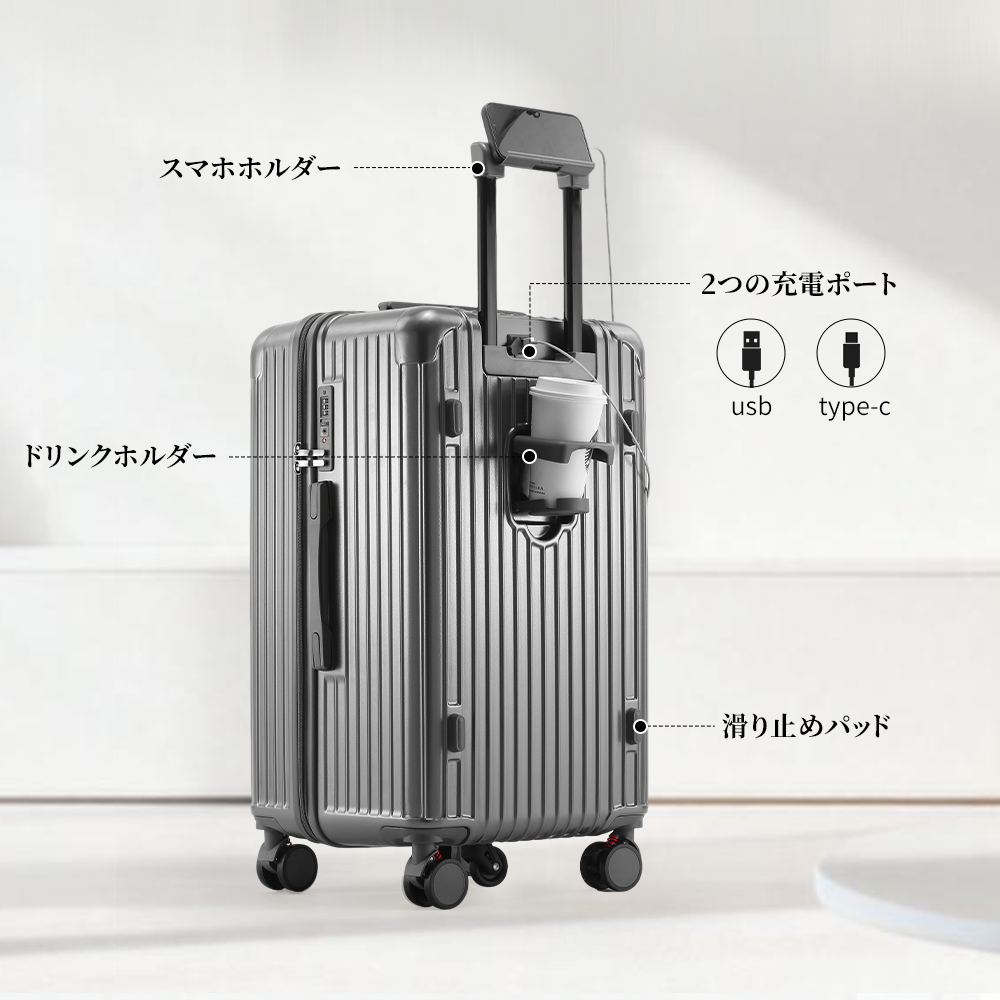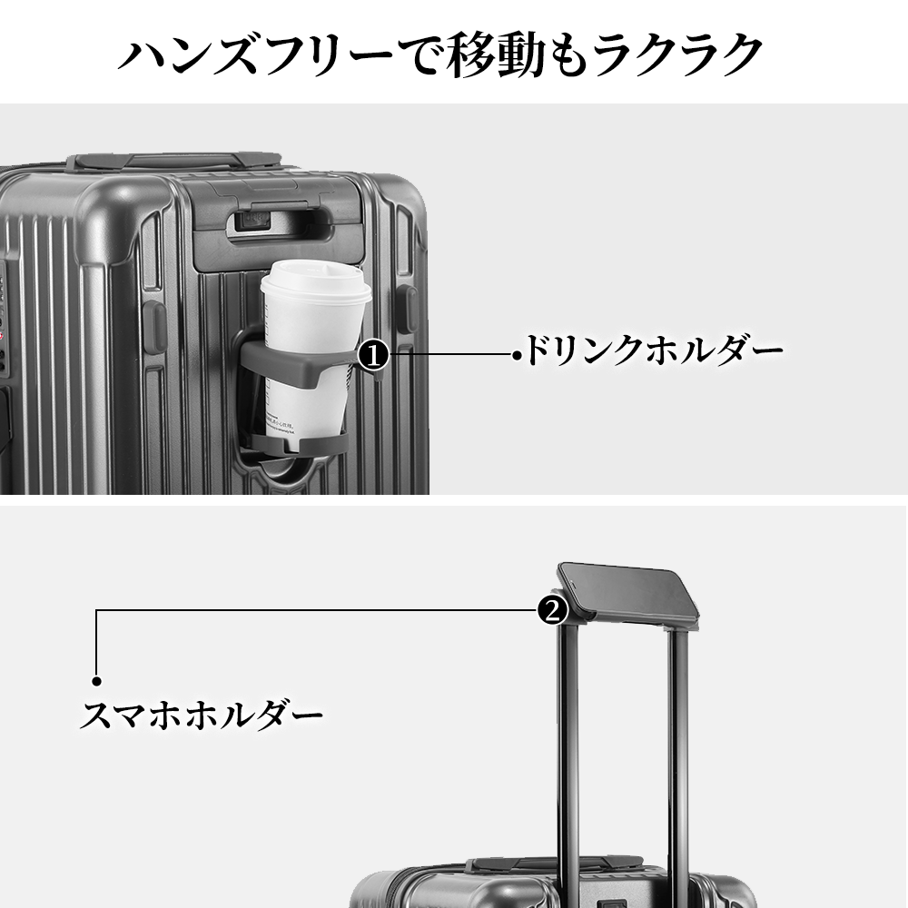 キャリーケース NeoFino スーツケース S M L 機内持ち込み 軽量 PC素材 多機能 TSAロック ドリングホルダー キャリーバッグ 充電ポート mサイズ 大容量