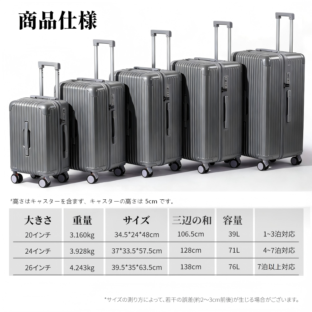 L: 26インチ 4.243kg 39.5*35*63.5cm 76 L 7泊以上対応