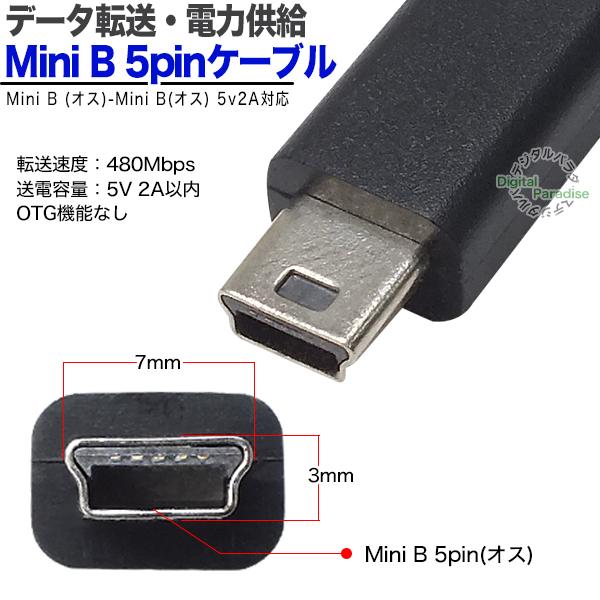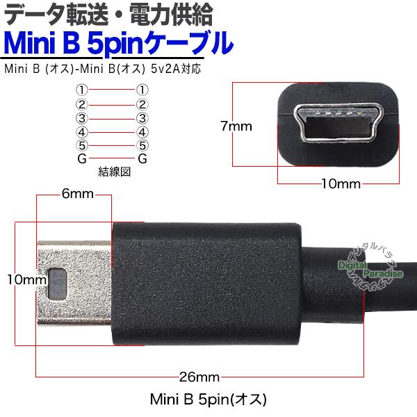 Mini B 5pin ケーブル 1m Mini B(オス)-Mini B(オス) 1m 開発ボード 周辺機器 デジカメ ナビ ドラレコ 電力供給 データ転送 ZUUN 5Mzc2-10