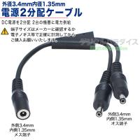DC電源2分配ケーブル 外径3.4mm 内径1.35mm