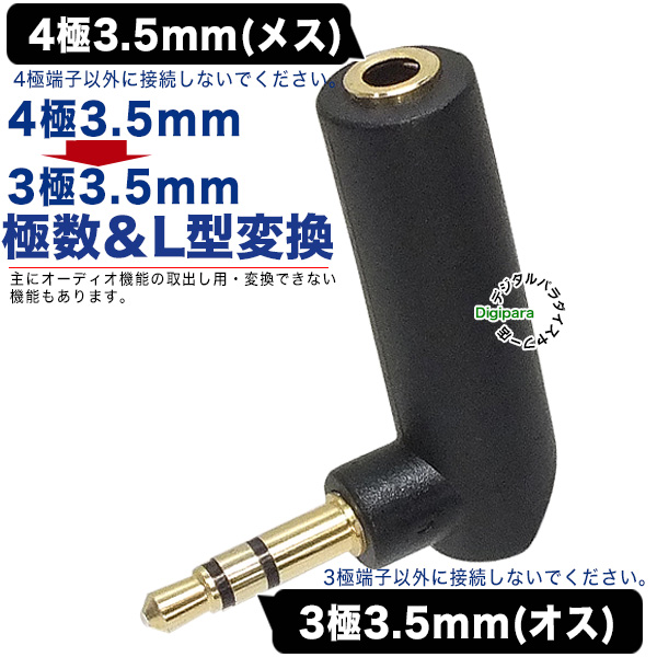 3.5mmステレオ4極端子→3.5mmステレオ3極端子変換アダプタ L型