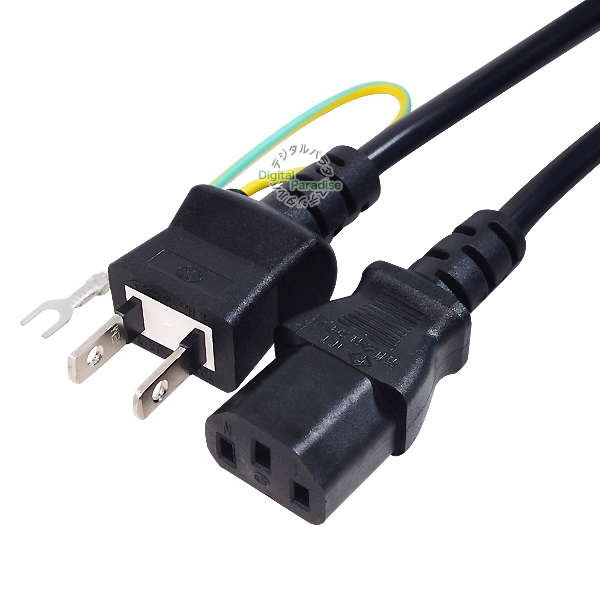 3pin電源を一般家庭用100v電源コンセントへ接続できる電源ケーブル