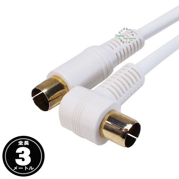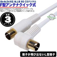 白いアンテナケーブル3m F端子(オス)⇔F端子(オス)L型 長さ:約3m 地上・BS・CSデジタル放送対応 8k 4k対応 COMON FQ-30A