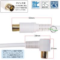 白いアンテナケーブル5m F端子(オス)⇔F端子(オス)L型 長さ:約5m 地上・BS・CSデジタル放送対応 4K 8K対応 COMON FQ-50A