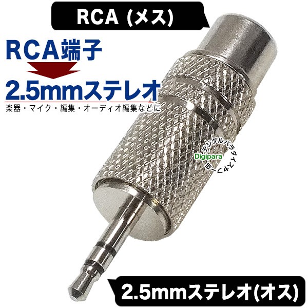 RCA端子→2.5mmステレオ端子変換アダプタ
