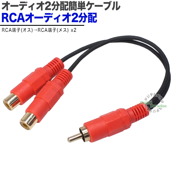 RCA2分配ケーブル RCA(オス)→RCA(メス)x2 20cm オーディオ分配用(赤) 車載スピーカー・イベント 音響 多スピーカー配置 COMON RD-Y