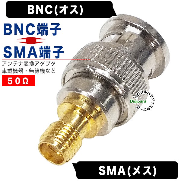 BNC⇔SMA変換アダプタ BNC(オス)⇔SMA(メス) SMAケーブルとBNC機器の接続・車載アンテナ・通信機器 制御機器等のケーブル変換 SMA-BNC