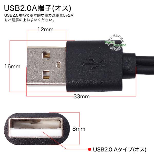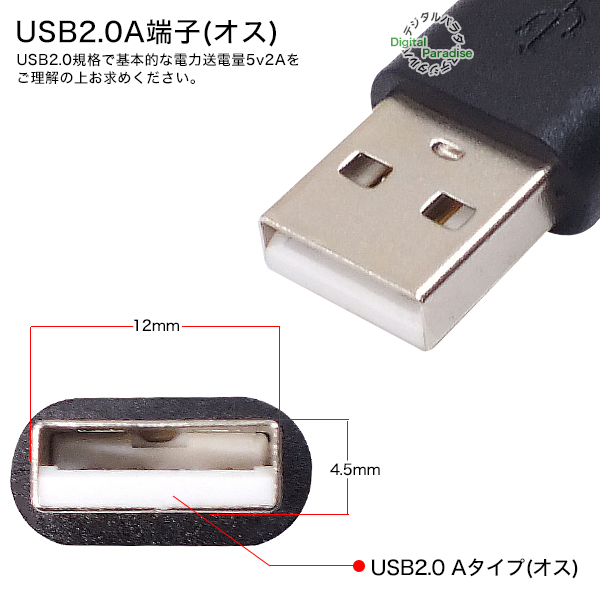電力入力用端子:USB A(オス)