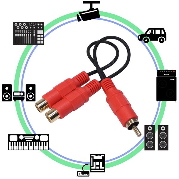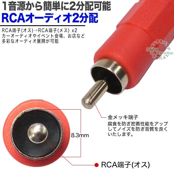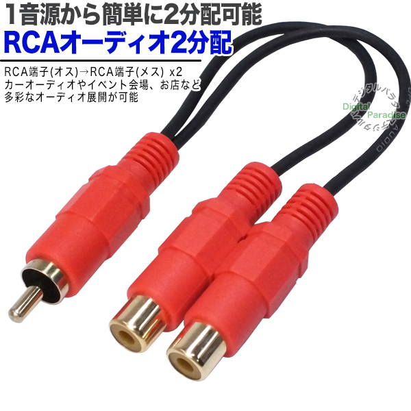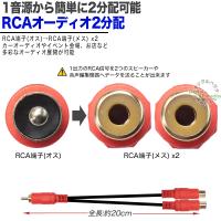 RCA2分配ケーブル RCA(オス)→RCA(メス)x2 20cm オーディオ分配用(赤) 車載スピーカー・イベント 音響 増設 編集 録音 ZUUN RDzcY