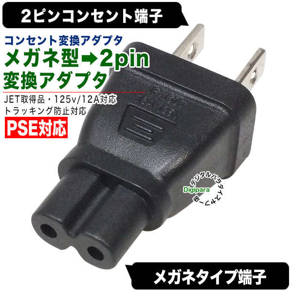 メガネタイプ2ピン→家庭用2pinコンセント変換アダプタ