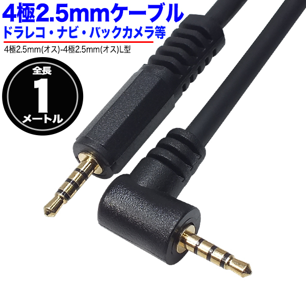 4極2.5mmケーブル片側直角1mm 4極2.5mm(オス)⇔4極2.5mm(オス) 片側L型 長さ:約1m プレーヤー・アンプ バランス接続 バックカメラ等 ZUUN W-425zc10A