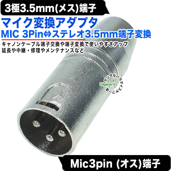 3極3.5mm→MIC端子変換アダプタ 3.5mmステレオ(メス)→MIC(3pin)(オス) XLR3 12C キャノン 楽器 マイク 音楽編集ケーブル延長、変換 35SzcMIC