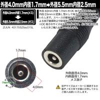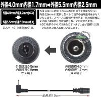 外径4.0mm内径1.7mm(メス)→外径5.5mm内径2.5mm(オス)変換ケーブル 15cm オス端子L型 電力供給 充電等 ZUUN 40175525ZC015L