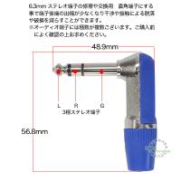6.3mmステレオ(オス)プラグ L型 青 端子後端が飛び出さず 干渉防止 狭所設置 オリジナル線 修理 交換 自作配線 楽器 音楽 ZUUN 63SZCLBL