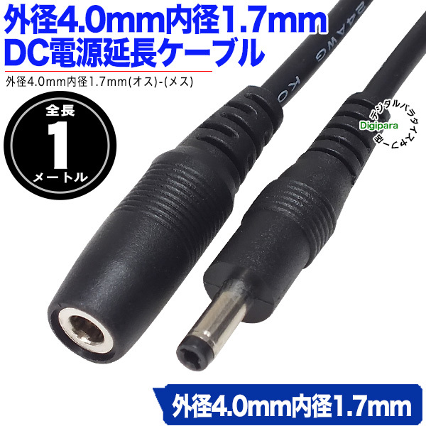 外径4.0mm内径1.7mmDC延長ケーブル1m 電力供給や充電用DC端子延長ケーブル 小型電子機器等 電源ケーブル DC端子用 DC-4017zc10E