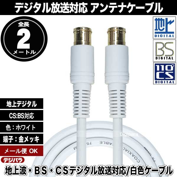 白いアンテナケーブル2m F端子(オス)⇔F端子(オス) 長さ:約2m 地上・BS・CSデジタル放送対応 4K対応 Zuun FQ-W20CA