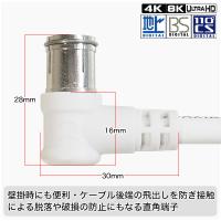 白いアンテナケーブル30cm F端子(オス)⇔F端子(オス)L型 全長:約30cm 地上波デジタル・BS・CSデジタル放送対応 8k 4k対応 ZUUN FQzc03A