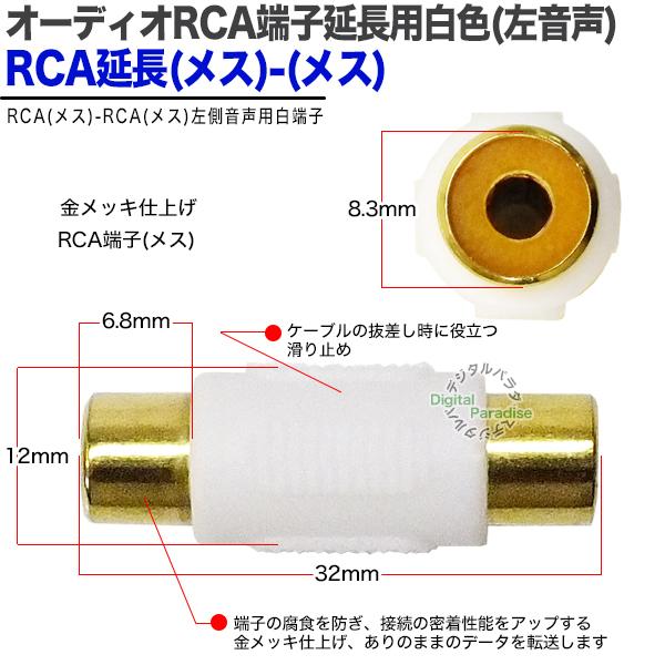 RCA延長アダプタ メス端子 RCA(メス)-RCA(メス) 端子 金メッキ 白色 左音声 ケーブル延長アダプタ RCA オーディオ 中継 ZUUN R1-FFWCA
