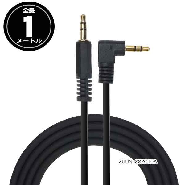 片L型3.5mmオーディオケーブル1m 3極3.5mm直角(オス)⇔3極3.5mm(オス) 約1m オーディオ パソコン 計測機器 音響機器 車載機器等 ZUUN SSZC10A