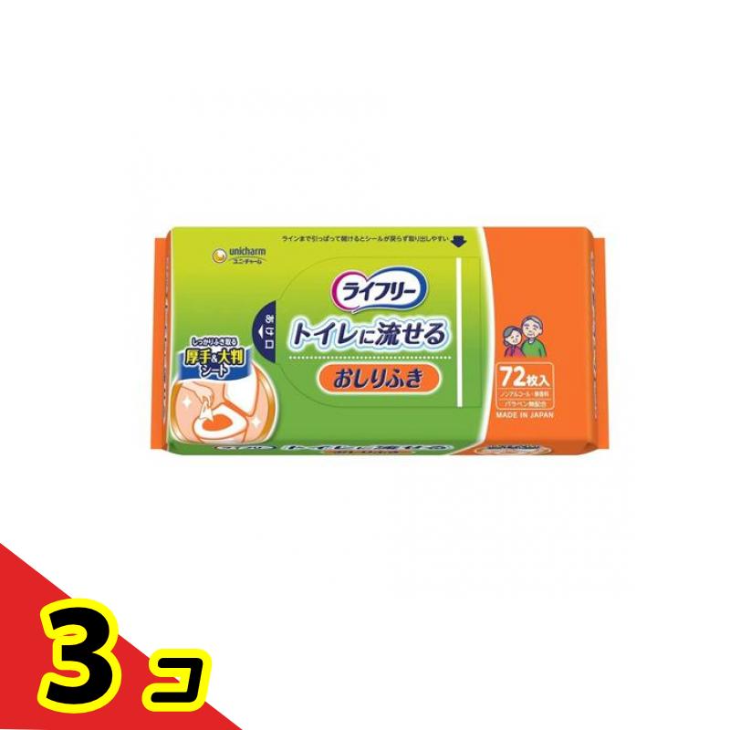 ライフリー おしりふき トイレに流せる 72枚 3個セット
