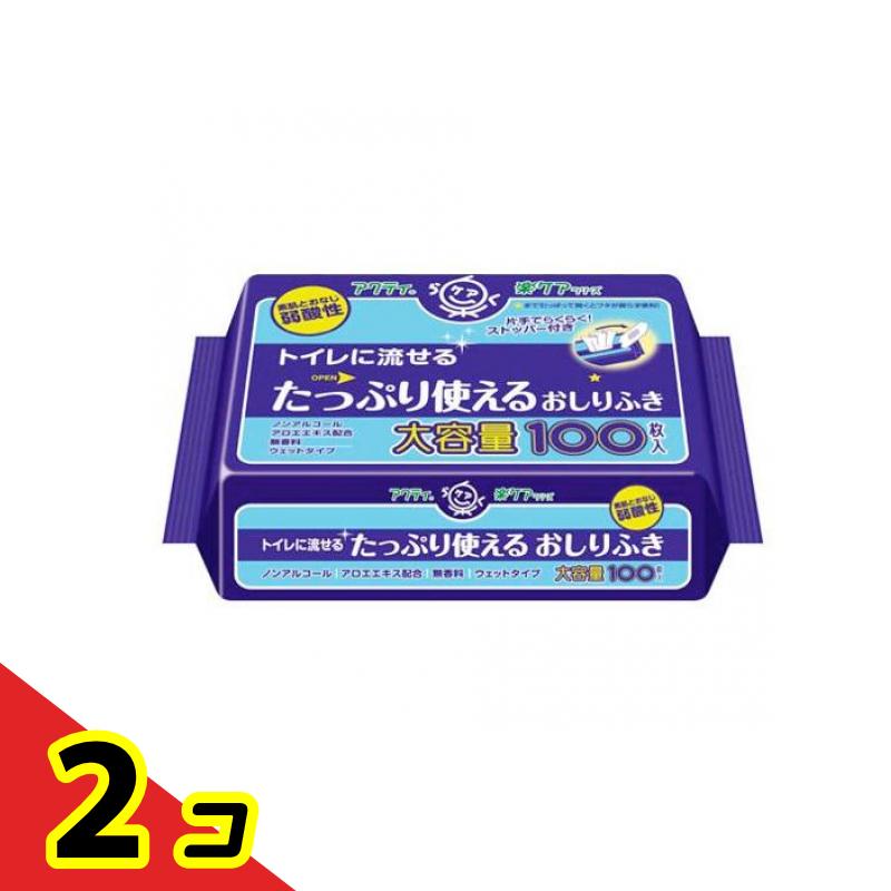 アクティ トイレに流せるたっぷり使えるおしりふき 100枚入 2個セット