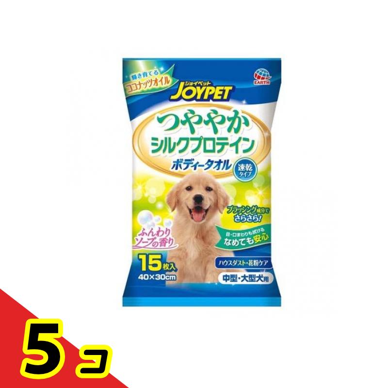 JOYPET(ジョイペット) ボディータオル つややかシルクプロテイン 犬用 15枚入 (中・大型犬用) 5個セット