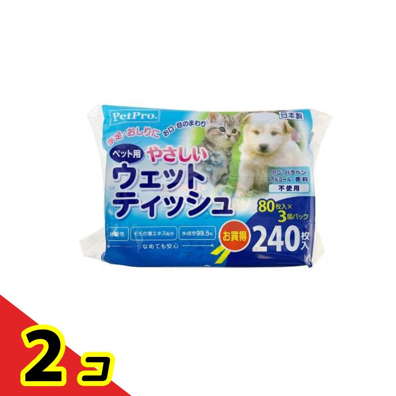 ペットプロ やさしいウェットティッシュ 80枚入× 3個パック 2個セット