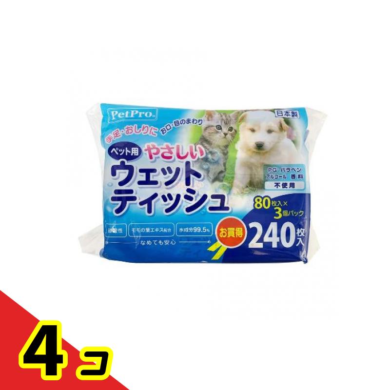 ペットプロ やさしいウェットティッシュ 80枚入× 3個パック 4個セット
