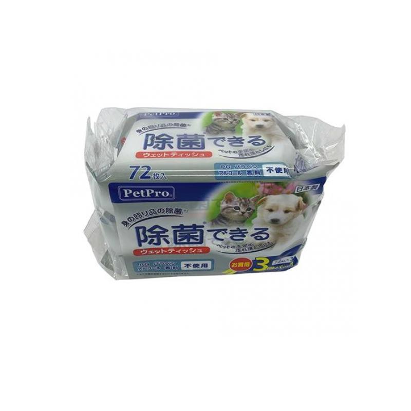 ペットプロ 除菌できるウェットティッシュ 72枚入× 3個パック (1個)