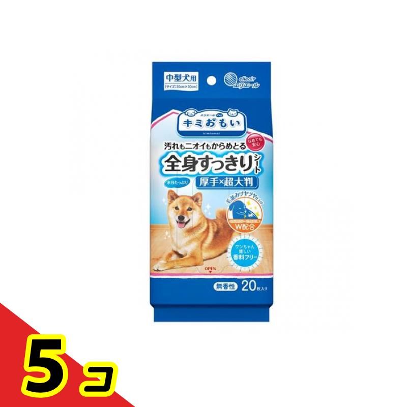 エリエールペット キミおもい 全身すっきりシート 中型犬用 30×30cm 20枚入 5個セット