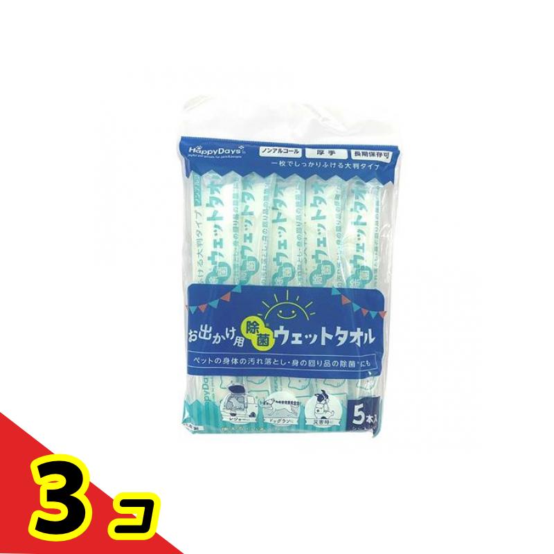 ペットプロ HappyDays お出かけ用除菌ウェットタオル 5本入 3個セット