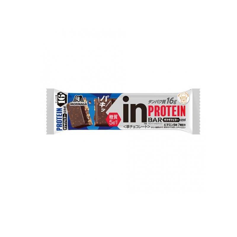 【商品名】inバープロテイン ザクザクビター ロカボ【製造販売会社】森永製菓(morinaga)【ご使用について】●原料の大豆パフ、大豆たんぱくは、遺伝子組換え作物が混入しないように管理されたものを使用しています。●直射日光を避けて28℃以下で保存してください。●開封後はお早めにお召し上がりください。●チョコレートは高温になると油脂分が溶け、冷えると白く固まることがあります。召し上がってもさしつかえありませんが、風味の点では劣ります。【原材料】●原材料