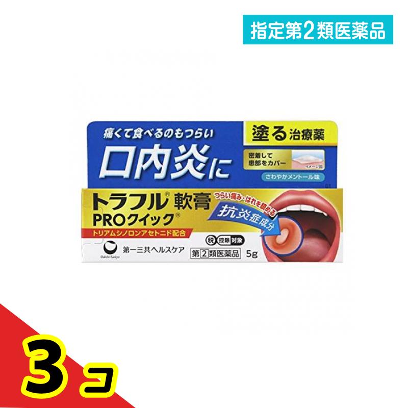指定第2類医薬品 トラフル軟膏PROクイック 5g アフタ性口内炎治療薬 塗り薬 子供 ステロイド 市販 3個セット