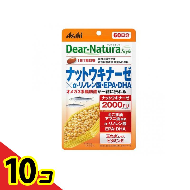 ディアナチュラスタイル ナットウキナーゼ×α-リノレン酸・EPA・DHA 60日分 60粒 10個セット
