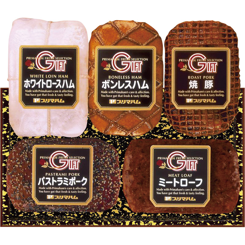 内容:ホワイトロースハム400g・ボンレスハム340g・焼豚300g・パストラミポーク280g・ミートローフ280g×各1