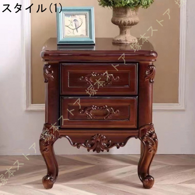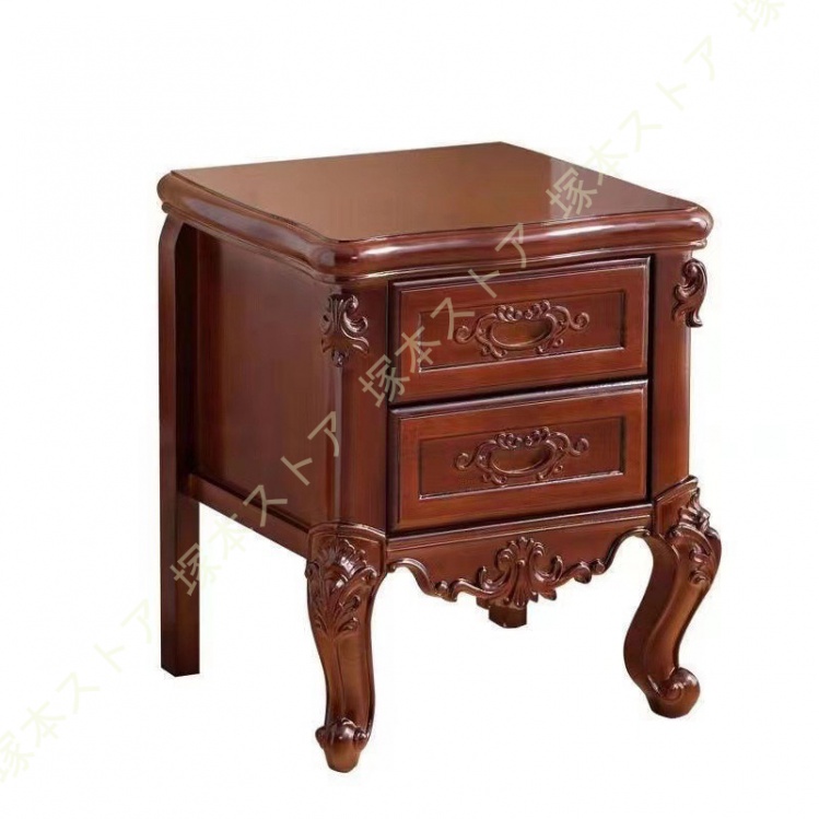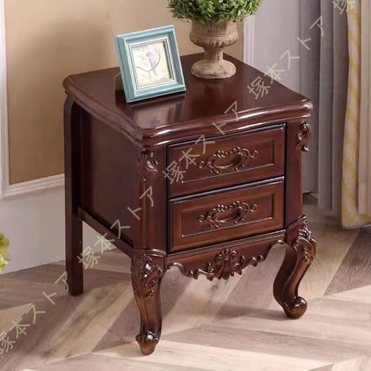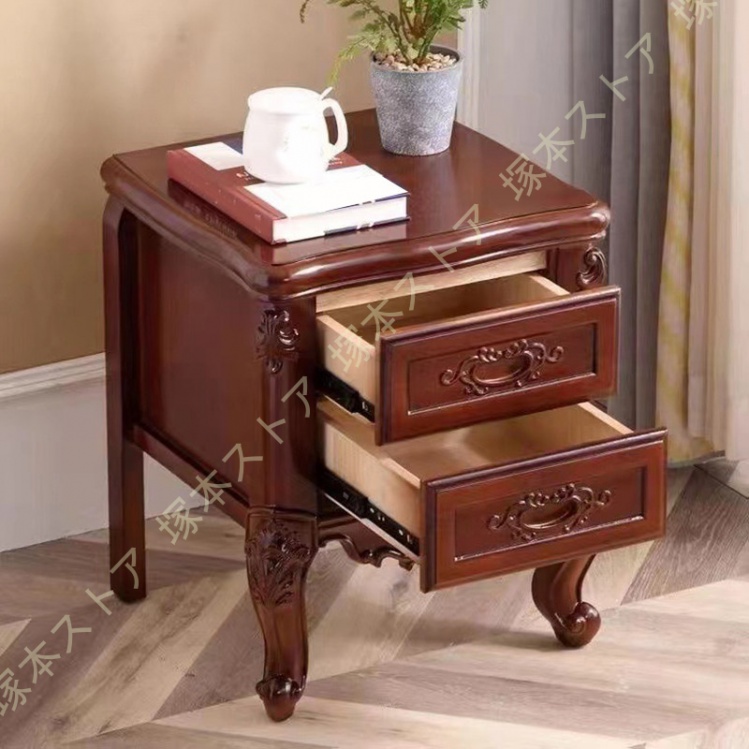 マホガニー マリー ナイトテーブル ベッドサイドテーブル 2段引出し 収納 組立 アンティーク サイドテーブル 木製 引出し ベッド サイドチェスト ソファ