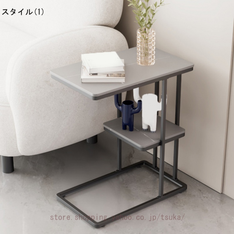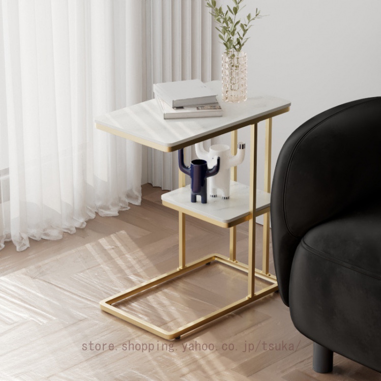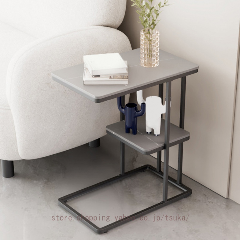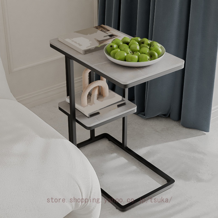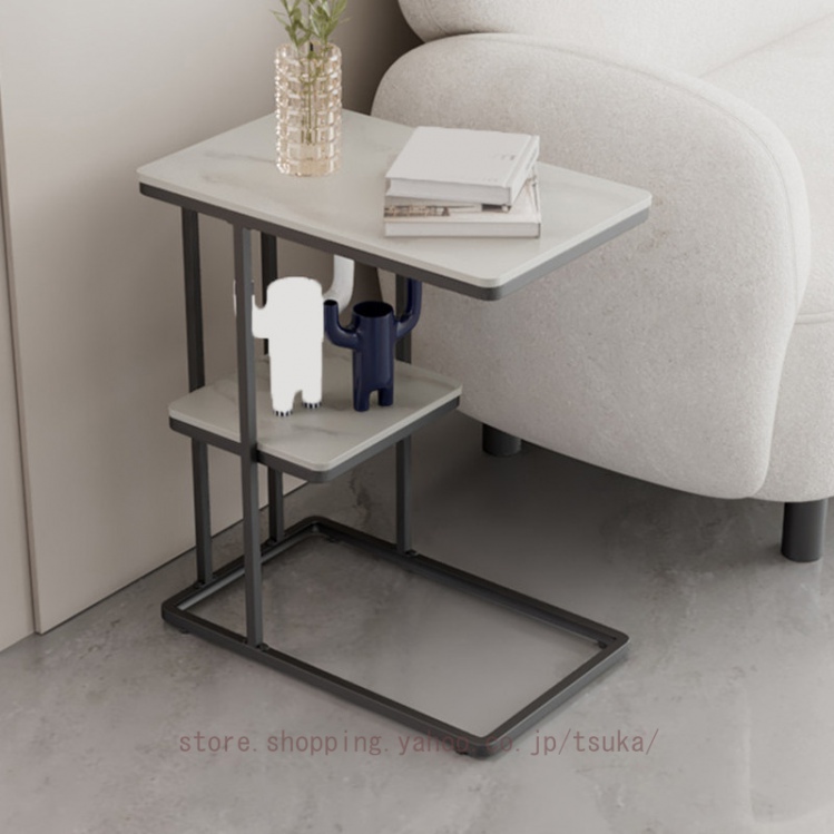 サイドテーブル ベッドサイド ナイトテーブル ソファーテーブル 大理石調 テーブル コの字型 2段 コンパクト スレート天板 おしゃれ かわいい インテリア 北欧