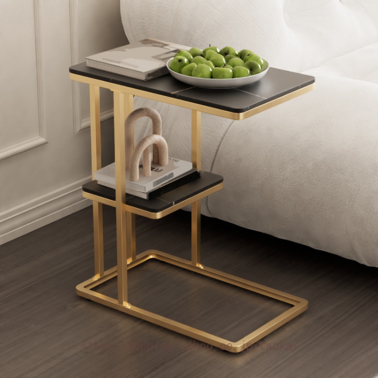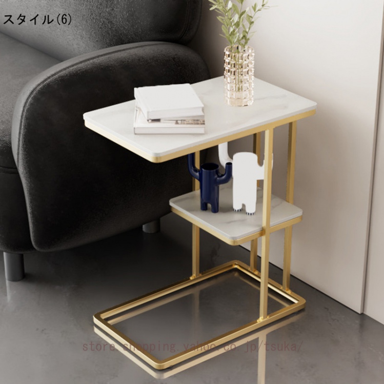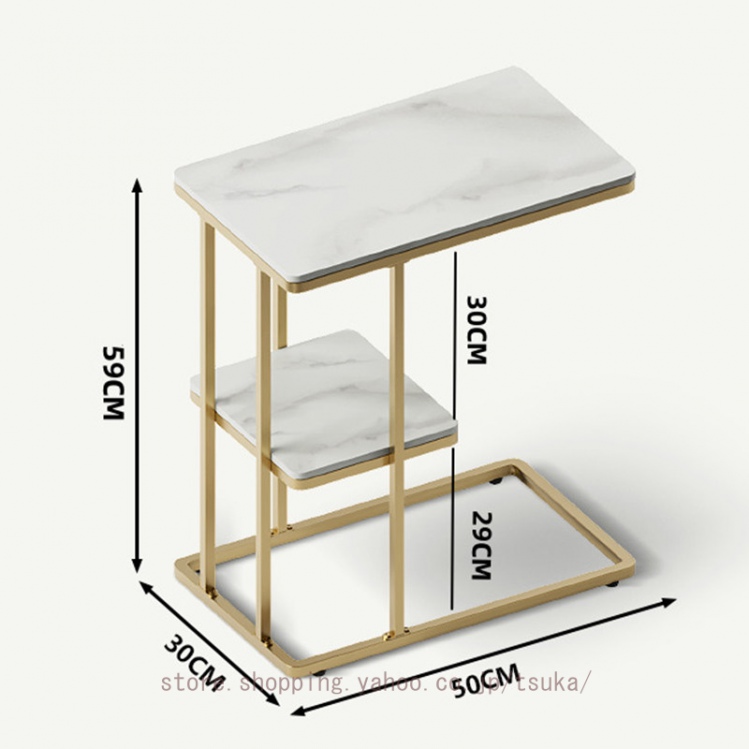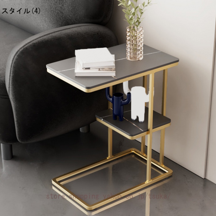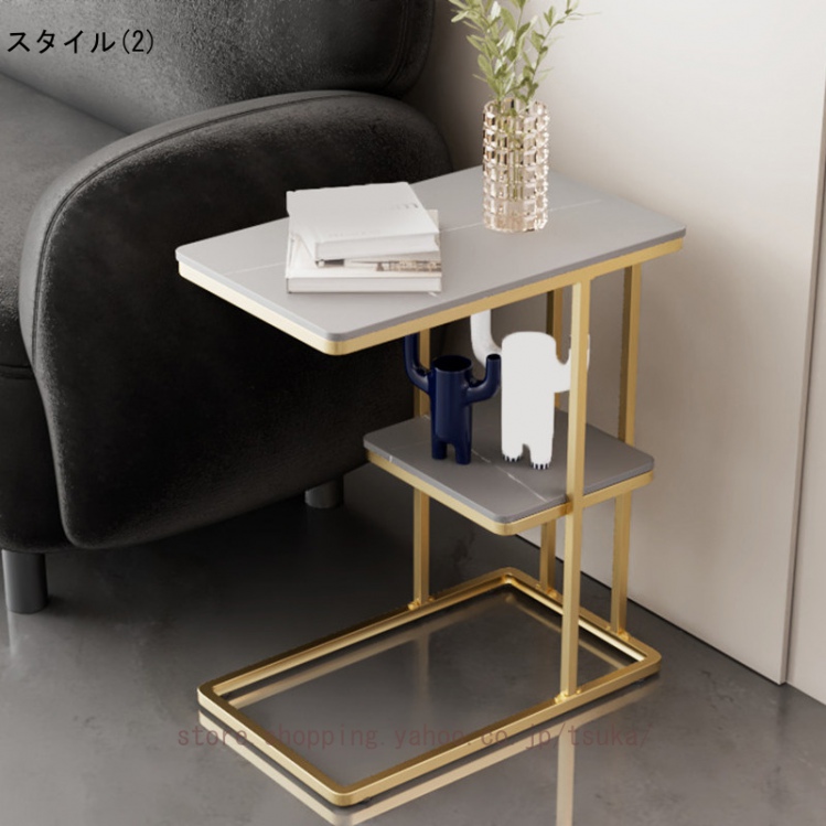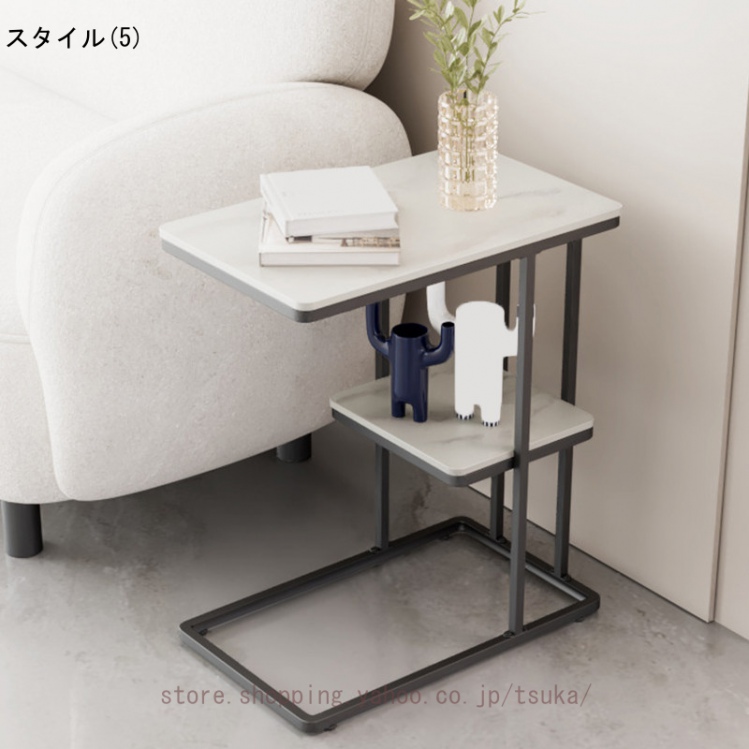 サイドテーブル ベッドサイド ナイトテーブル ソファーテーブル 大理石調 テーブル コの字型 2段 コンパクト スレート天板 おしゃれ かわいい インテリア 北欧