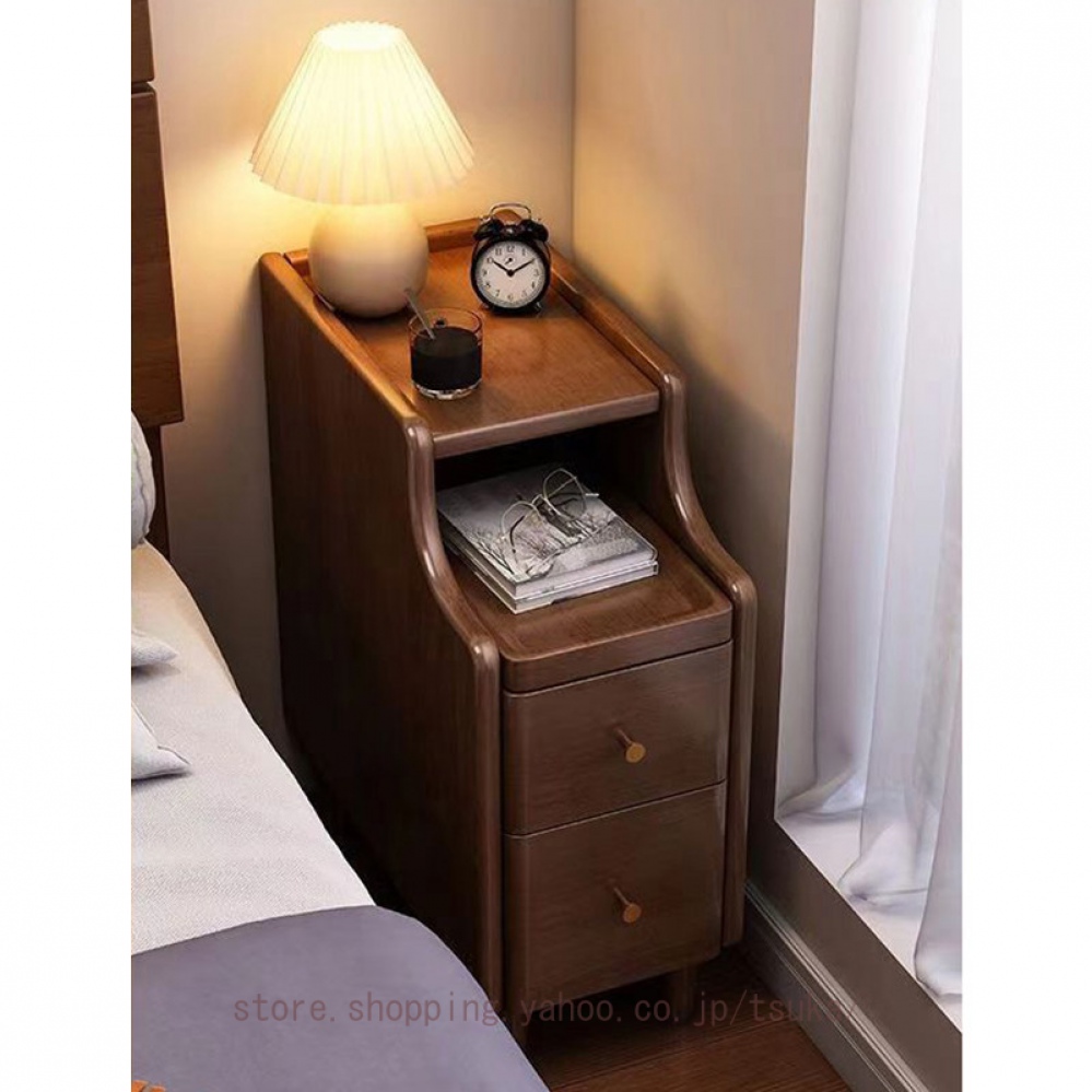 ベッドサイドテーブル ナイトテーブル ベッド横 木製 引き出し付き 完成品 組立不要 スリム 省スペース コンパクト 小物収納 無垢材 シンプル サイドチェスト