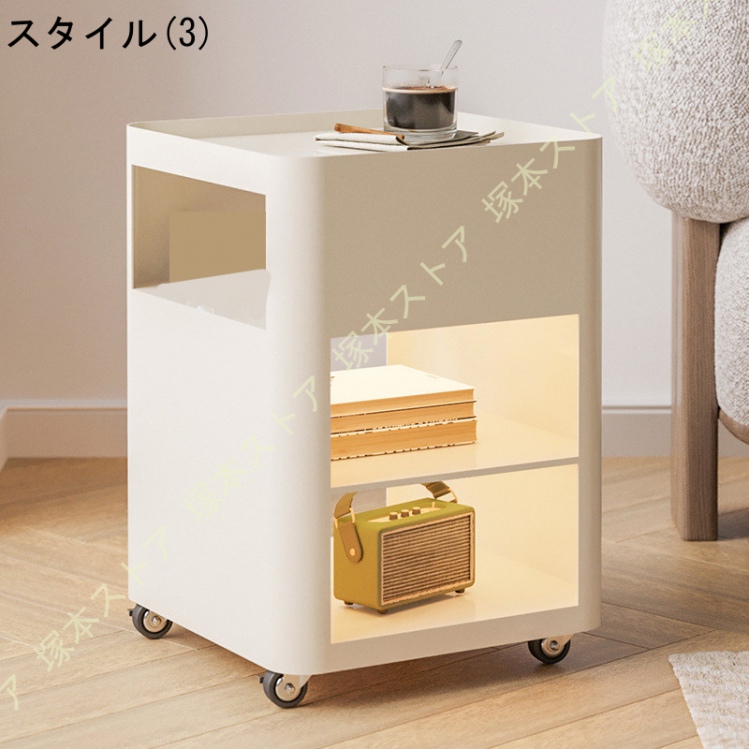 サイドテーブル ナイトテーブル サイドデスク 3段収納&ホイール付き オープンタイプ キャスター付き お洒落 見せる収納 多機能 小型サイドテーブル おしゃれ