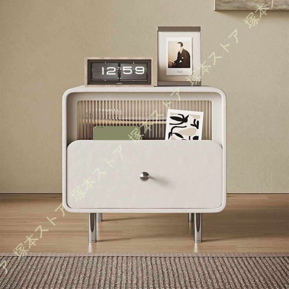ベッドサイドテーブル サイドテーブル クリーム 寝室キャビネット ベッドサイド 収納キャビネット 無垢材 小型 ソフトバッグ シンプル モダンスタイル