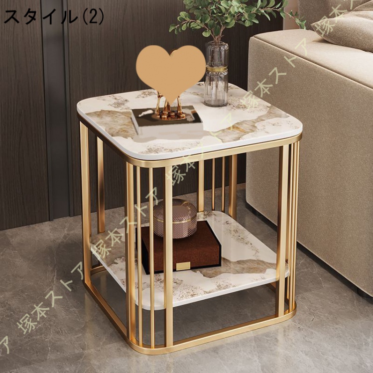 サイドテーブル おしゃれ ベッドサイド テーブル 大理石 ナイトテーブル 白 ミニデスク ソファ 物置台 収納 サイドデスク 2段 北欧 一人暮らし 棚付き
