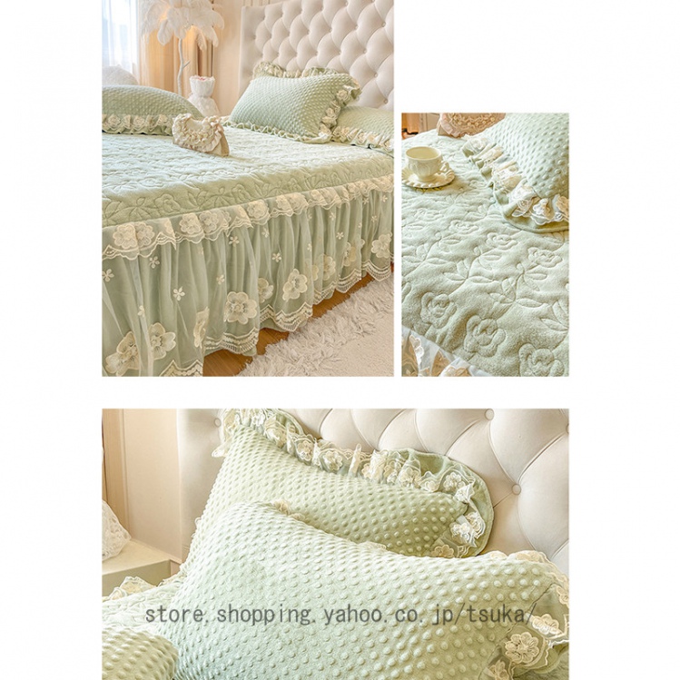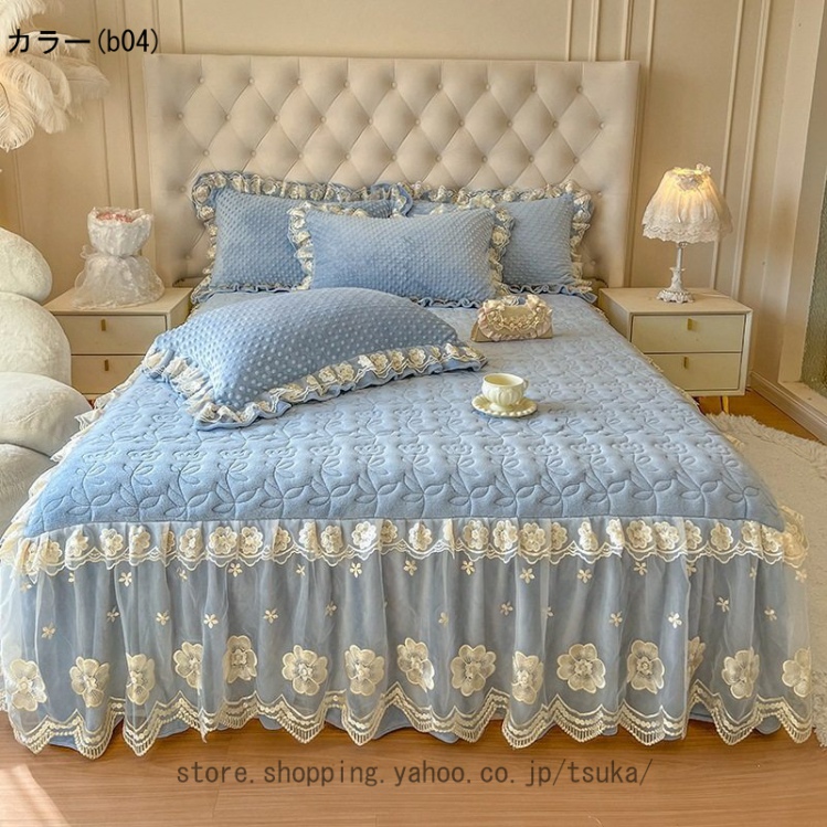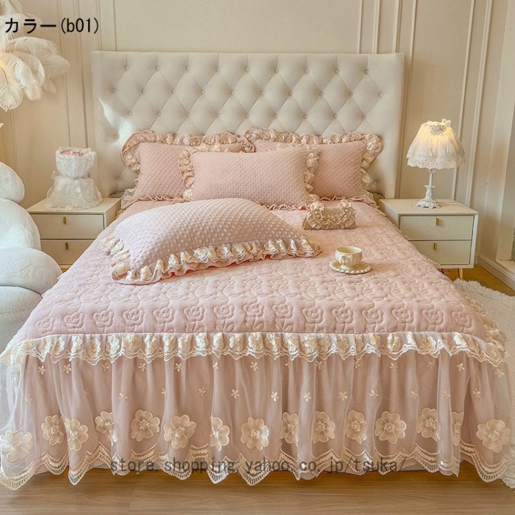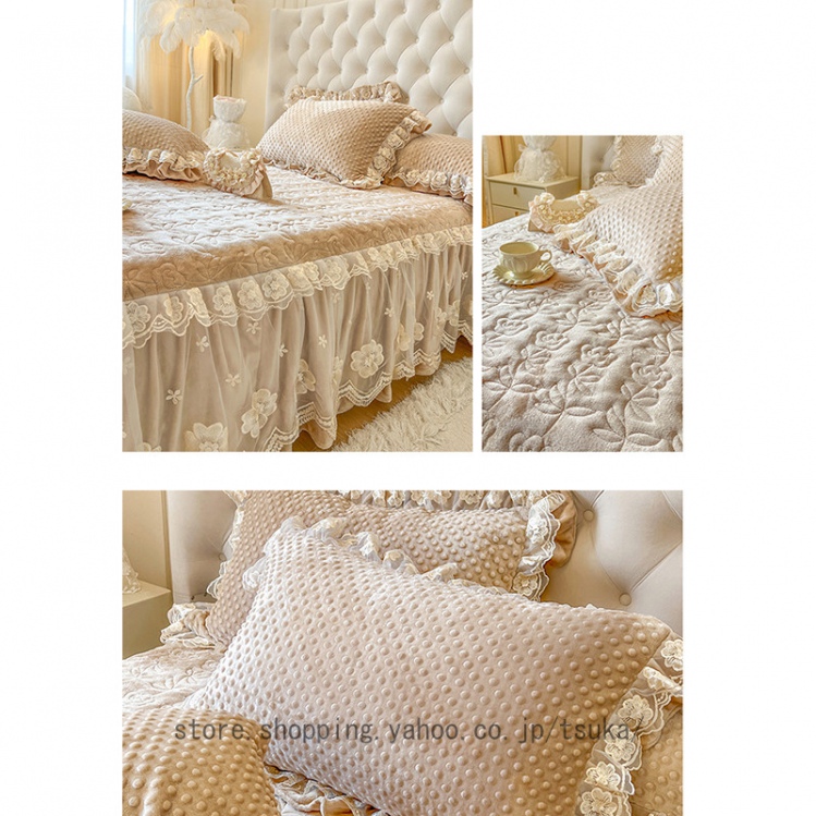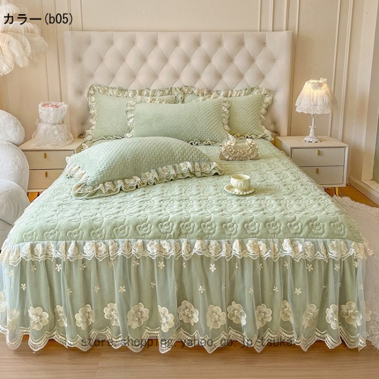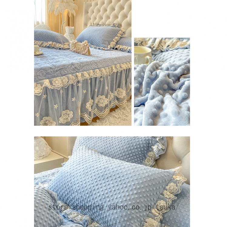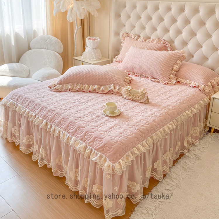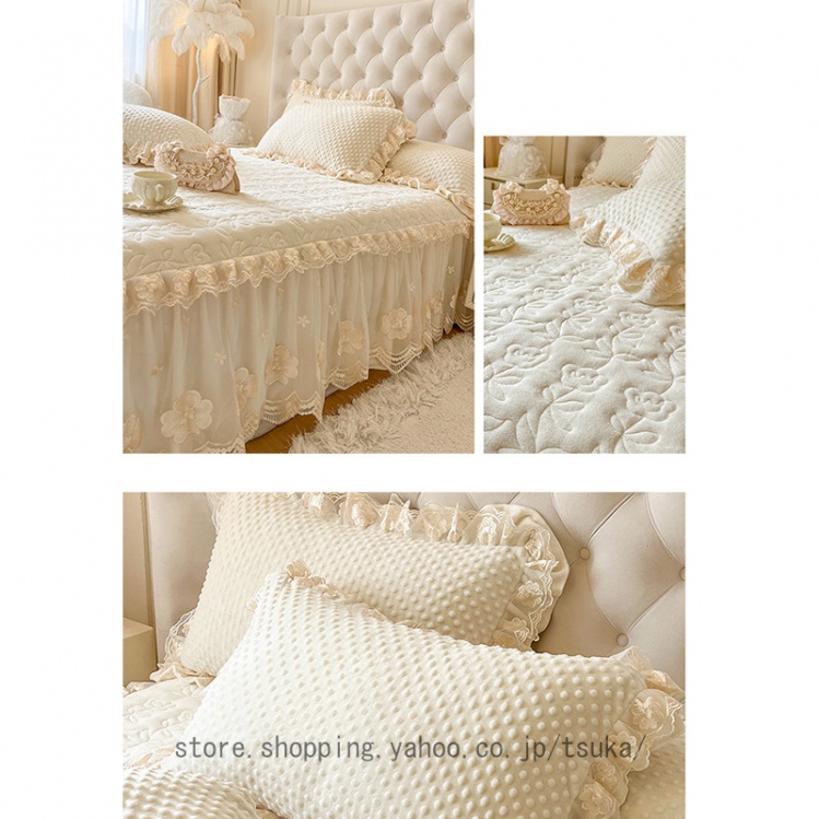 中綿 ベッドスカート 姫系 厚め 保温 フランネル 柔らか 暖かい ダブル クイーン キング 秋冬 きれいめ ロング ベッドカバー シーツカバー マットレスカバー