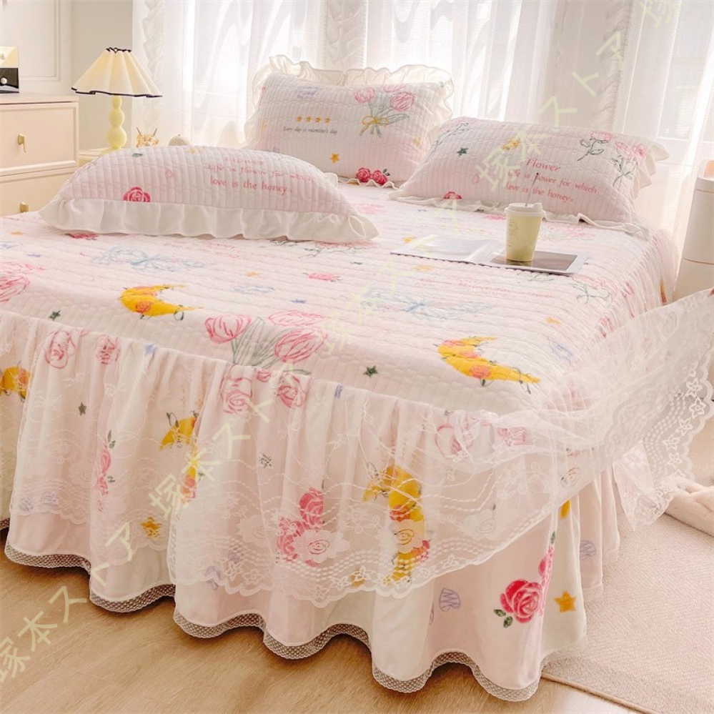 レース ベッドスカート ベッドシーツ マットレス敷きカバー 肌に優しい ベッドスプレッド フリル 寝具カバー 敷きシーツ キルティング 通気性 耐久性 丸洗いok