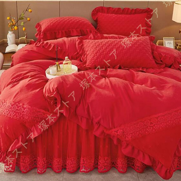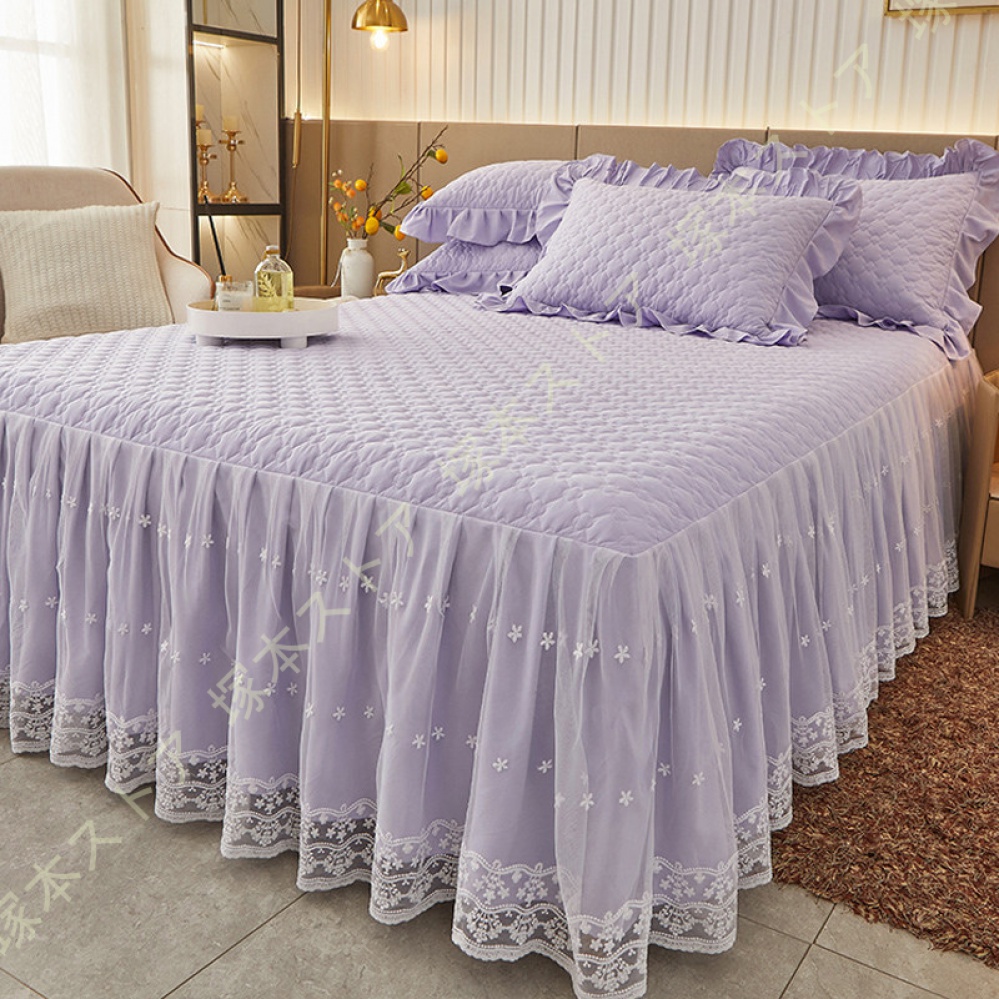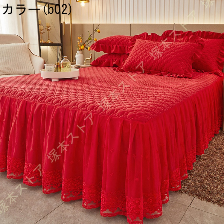 中綿ベッドスカート ベッドスカート 花柄 キルティング コットン 洗いざらし 柔らかい クイーン 大きいサイズ きれいめ 上品 フリル ベッドカバー